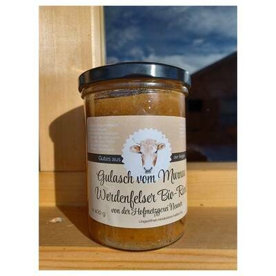 hauseigenes Gulasch vom Murnau Werdenfelser Biorind im Glas, nur noch warm machen